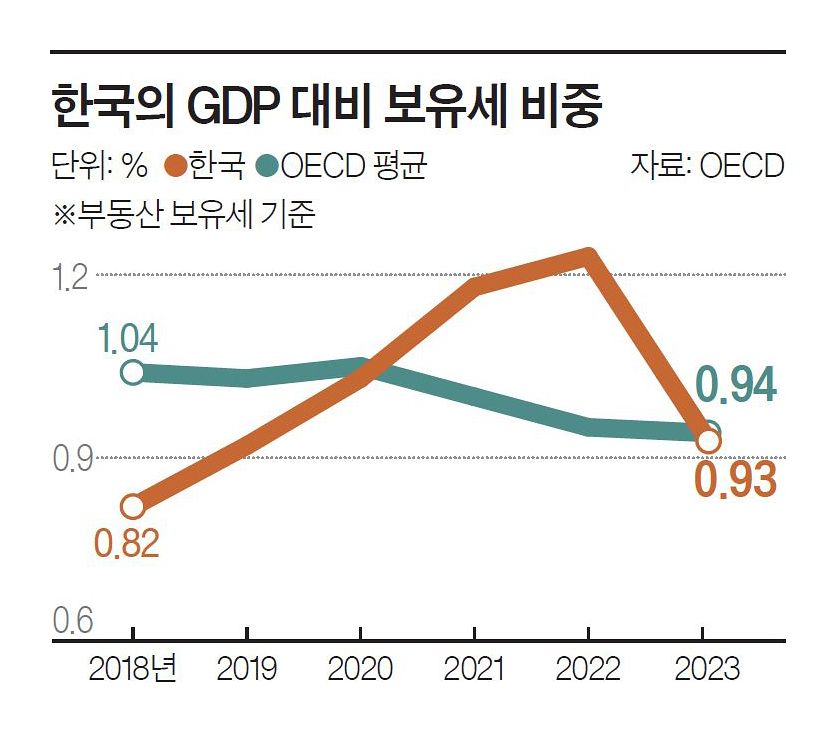 GDP 대비 보유세 부담률, 한국 0.93%…OECD 38개국 평균인 0.94%와 비슷