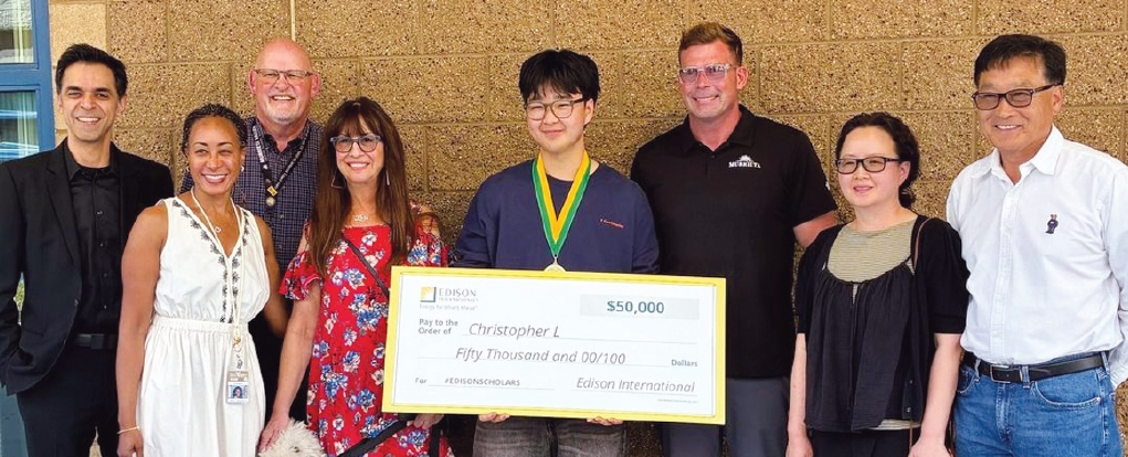 남가주 에디슨사가 ‘에디슨 장학생(Edison Scholars)’으로 한인 크리스토퍼 이씨를 선정했다. 지난 23일 비스타 무리에타 고등학교에서 열린 행사에서 이씨는 에디슨사로부터 5만 달러의 장학금을 받았다. 이씨는 응급 구조 인력 지원을 위한 윤리적 인공지능 개발을 목표로 하고 있다.