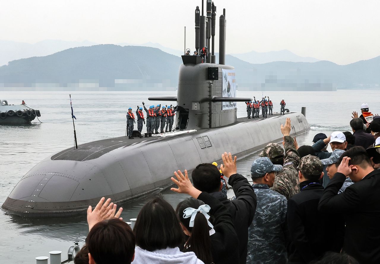 25일 경남 진해군항에서 도산안창호함이 출항을 앞두고 승조원과 가족들이 인사하고 있다. 도산안창호함은 한국·캐나다 연합협력훈련을 위해 캐나다까지 1만4000㎞를 이동한다. 한국 잠수함 역사상 최장 이동, 최초 태평양 횡단이다. 한국은 최대 60조원 규모의 캐나다 차기 잠수함 도입 수주전에 참여하고 있다.