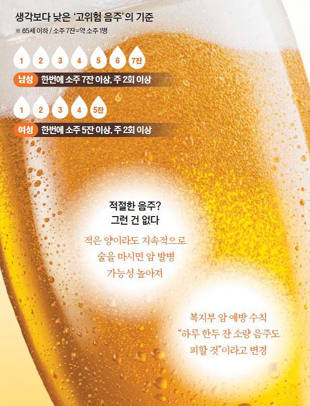 진료실에서 만나는 환자 중 음주하는 분들은 흔히들 자신은 적당하게 술을 마신다고 얘기한다. 본인은 문제가 될 정도로 술을 마시는 사람이 아니라는 것인데, 대개 자신이 술을 많이 마신다는 것을 인지하지 못하는 것이다. 하지만 의학적으로 ‘위험 음주’의 기준은 생각보다 낮다. 65세 이하 남성을 기준으로 했을 때 주 2회 이상, 한 번에 소주 한 병 이상을 마신다면 이미 고위험 음주자다. 진료실에서 술 때문에 문제가 되는 것 같아서 물어봤을 때 이 정도 음주는 소박한 음주라고 여기는 경우가 대부분이었고, 위험한 음주라고 인지하는 분은 별로 만나보지 못했다.