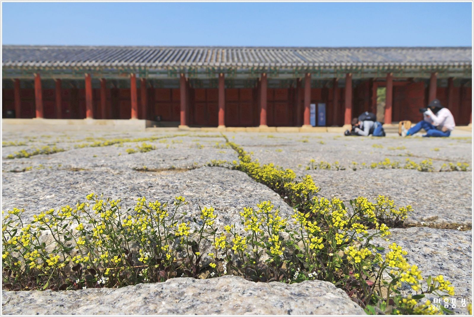 서울 창경궁 명정전 앞마당. 작고 하찮은 풀꽃이라고 지나치지 말자. 자세히 보면 경이롭고 예쁜 꽃다지. 렌즈 24mm, iso 100, f14, 1/160초.