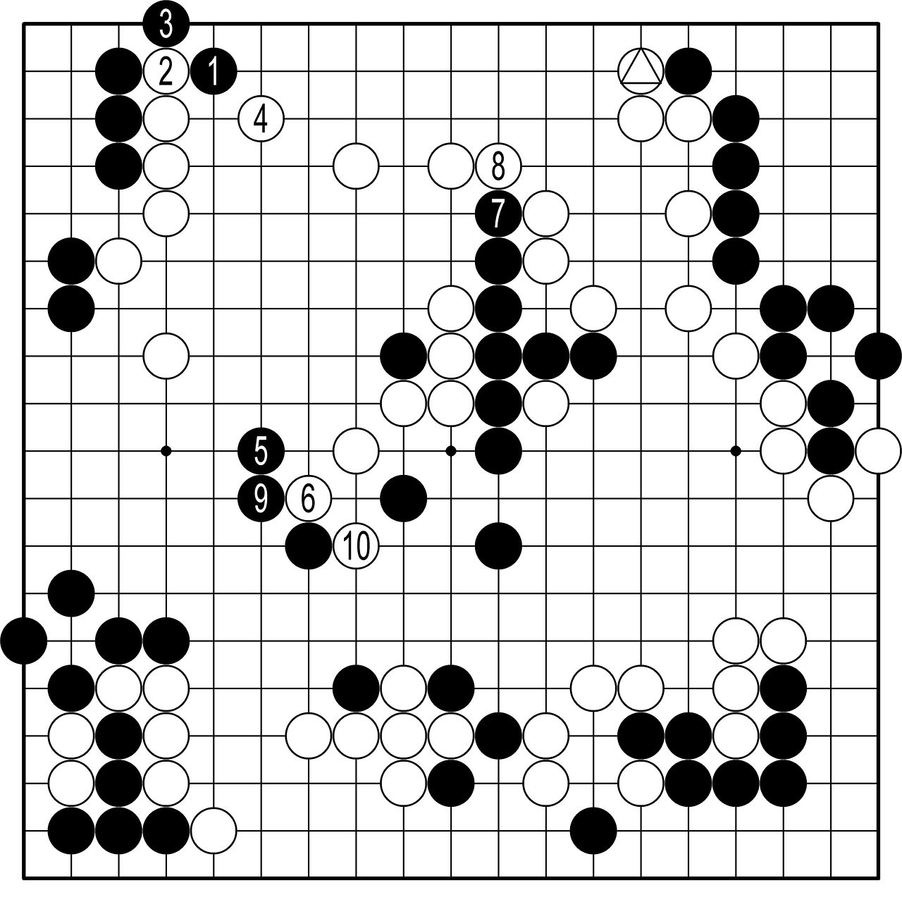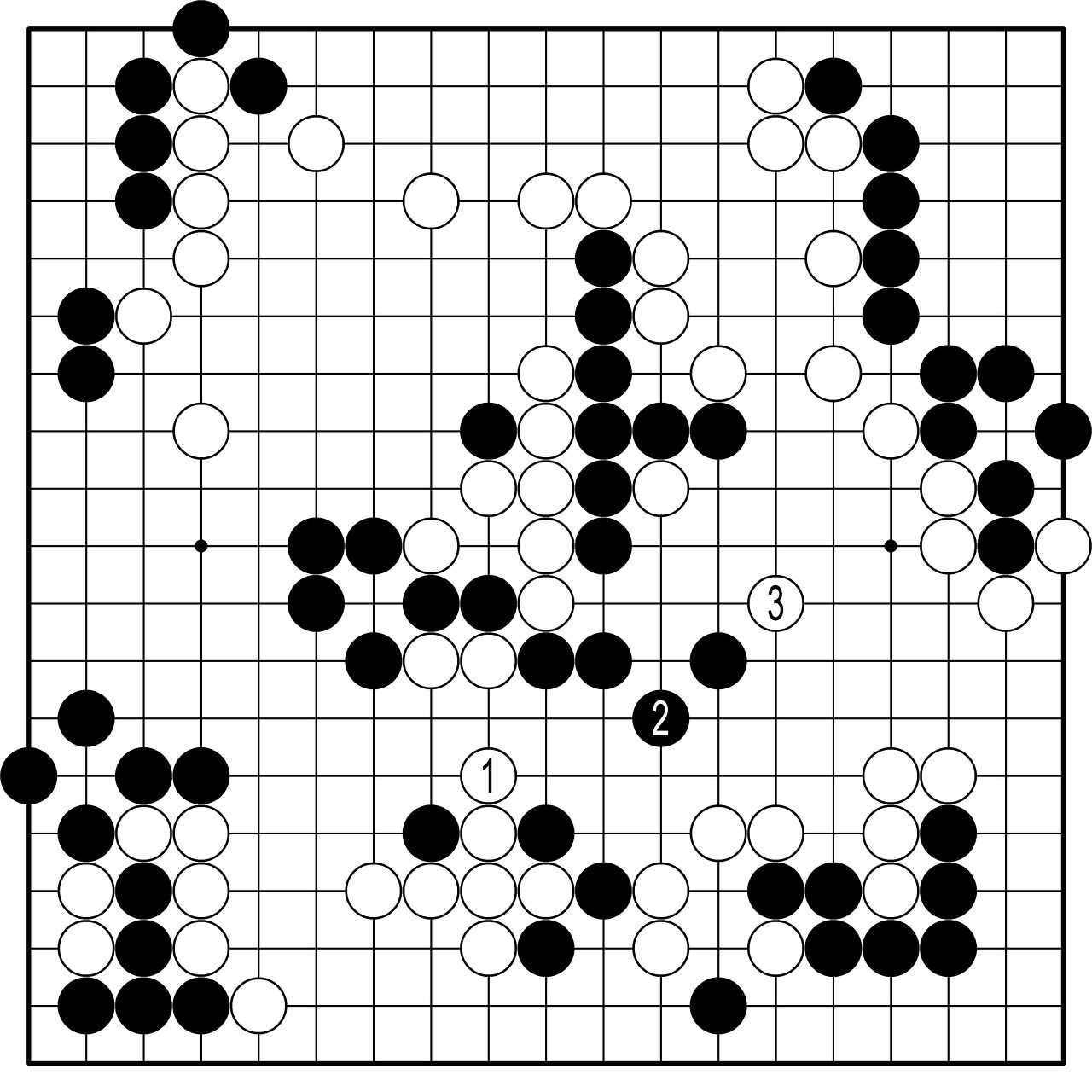 ◆AI의 최선=백1로 연결하고 흑2로 집 모양을 만들 때 백3으로 공격하는 것이 AI가 제시한 최선의 공격이다. 물론 정수로는 흑 승이지만 실전에서는 막상 떨리는 승부였을 것이다.