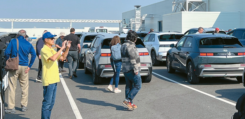 현대차는 지난 23일 전국 미디어를 대상으로 조지아주 서배너 인근 브라이언 카운티 엘라벨에 위치한 현대자동차그룹 메타플랜트 아메리카(HMGMA) 견학 행사를 진행했다. 이번 행사는 최근 현대차의 전동화 전략을 중심으로 전기차(EV) 생산과 조립, 품질관리 과정, 테스트 트랙 운영, 그리고 현장 근로자 교육 시스템까지 전반적인 EV 생산 공정을 투명하게 공개하기 위해 기획됐다. 견학 행사 참석자들이 품질 관리 트랙을 체험하기 위해 이동하고 있다. 서배너 현대차 공장=우훈식 기자