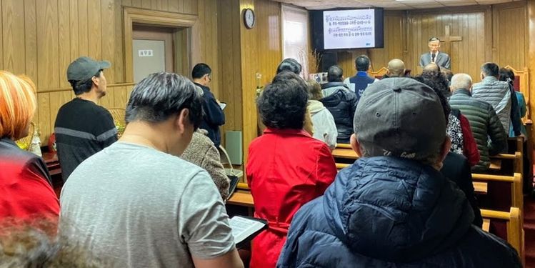 주님의 식탁선교회에 모인 타민족들이 예배를 드리고 있는 모습. [주님의식탁선교회]