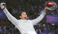 오상욱, 구본길, 박상원, 도경동으로 구성된 남자 사브르 대표팀은 31일(현지시간) 프랑스 파리 그랑팔레에서 열린 2024 파리 올림픽 단체전 결승에서 헝가리를 45-41로 제압하고 금메달을 목에 걸었다. 이로써 펜싱대표팀은 올림픽 펜싱 남자 사브르 단체전에서 3회 연속 금메달 획득의 위업을 달성했다. 남자 사브르 단체 결승전에서 교체 투입된 도경동이 연속 득점을 한 뒤 환호하고 있다. 〈관계기사 2·10면〉 [연합] 관련기사 펜싱 금메달로 금 6개 종합순위 6위 오상욱과 구본길 그리고 새 멤버까지... '뉴 어펜져스', 펜싱 단체전 3연패로 새 역사 썼다금메달 한국 한국 펜싱 연속 금메달 올림픽 펜싱