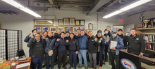 뉴욕한인수산인협회는 4일 오전 브롱스에 위치한 헌츠포인트 마켓 내 사무실에서 회원들과 함께 시무식을 열었다. 협회 회원들이 함께 파이팅을 외치고 있다. [뉴욕한인수산인협회]뉴욕한인수산인협회 시무식 협회 회원들 오전 브롱스